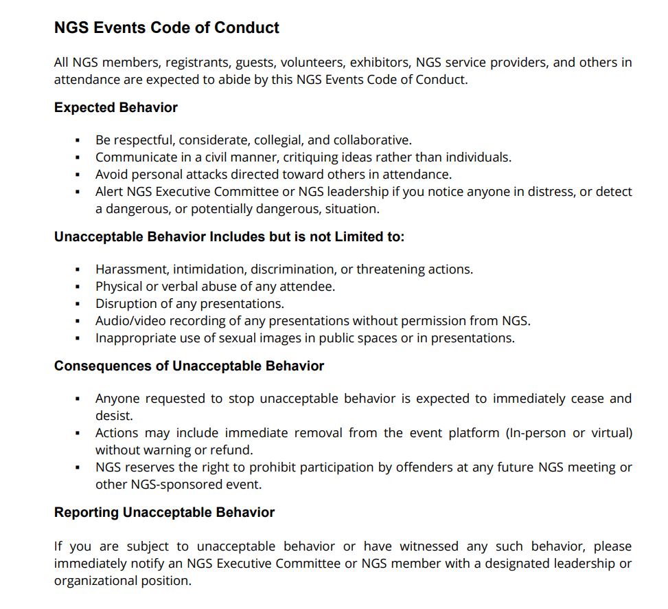 NGS Events Code of Conduct
